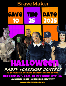 Come join us for a spooktacular night at our Annual Costume Party! Get ready to show off your most creative costumes and dance the night away. This in-person event will be held in Redwood City’s Alhambra House and the Center for Creativity, so mark your calendars and get your costume ready! Whether you’re a witch, a superhero, or a ghost, we can’t wait to see your outfit. PRIZES WILL BE AWARDED!